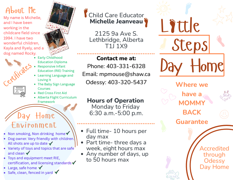 My name is Michelle, and I have been working in the childcare field since 1994. I have two wonderful children, Kayla and Ryely, and a dog named Rocky.